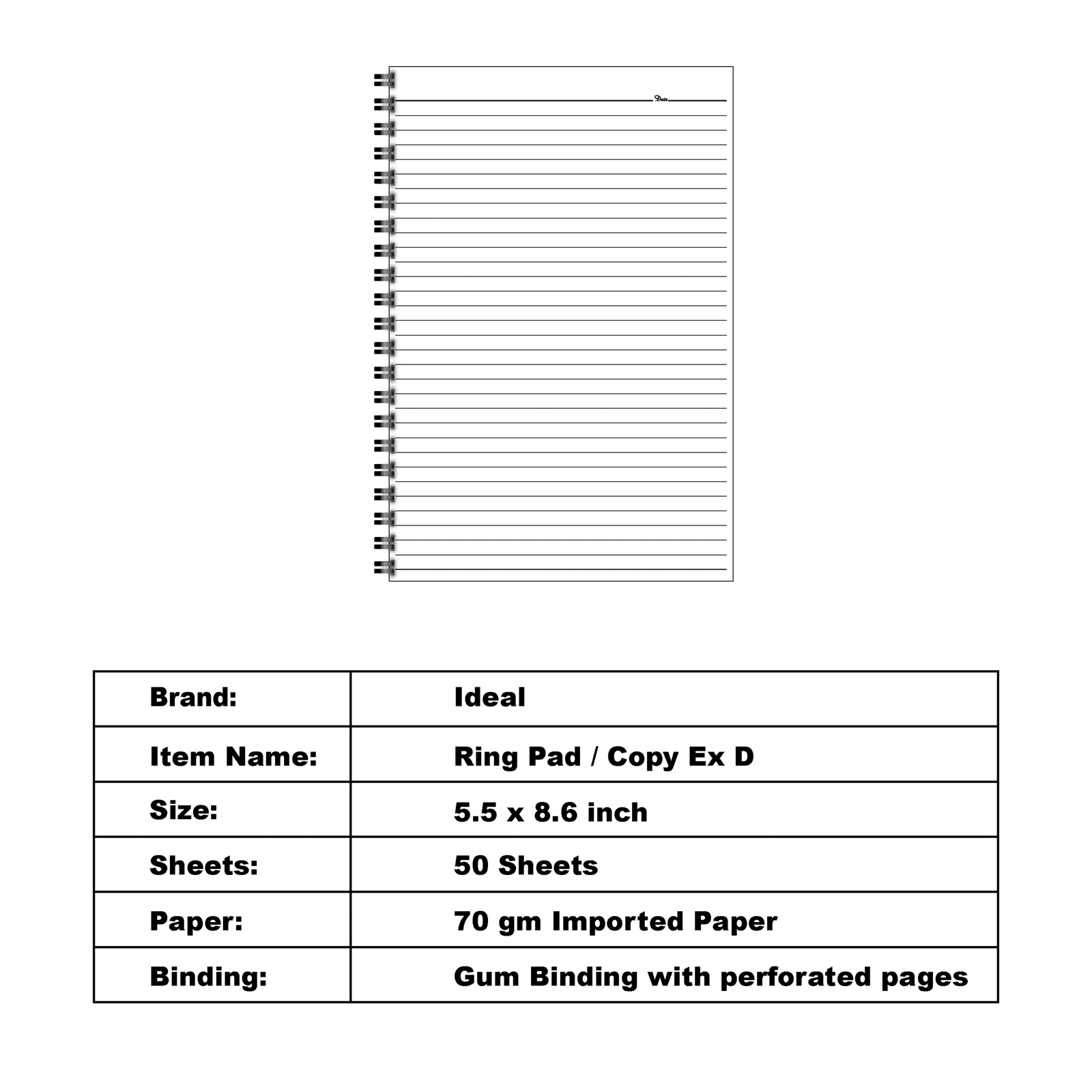 Spiral Notebook / Pad Ex D – Size A5 – Imported Paper
